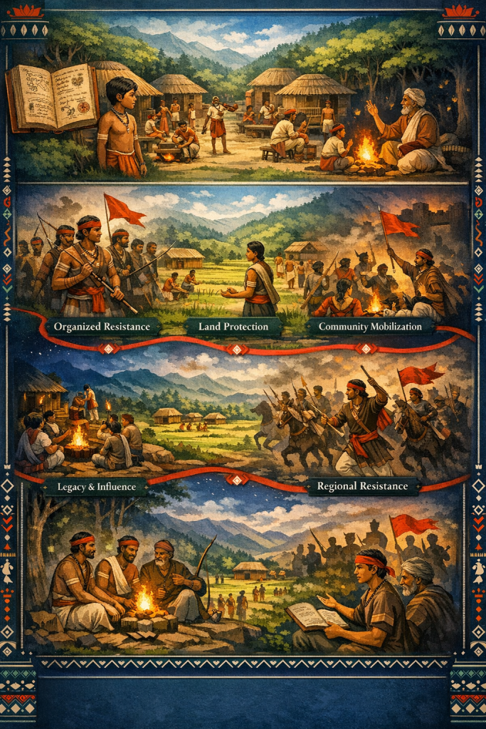 Timeline of Life Home Timeline Chronology key events 1870s Early Roots Born into a tribal community, early experiences shaped his values, resilience, and leadership outlook strongly. 1880s Growing Consciousness Exposure to injustice awakened his awareness, strengthening resolve to protect land, culture, and people collectively. 1900s Active Resistance He led significant confrontations, displaying courage, sacrifice, and determination that inspired continued regional resistance movements. 1910s Regional Reach Leadership expanded across regions, coordinating movements, communication networks, and strategic responses to colonial pressure effectively. 1910s Colonial Crackdown Arrest and suppression followed, yet his ideals endured, strengthening community resolve and collective memory lasting. 1920s Oral Memory Stories of his struggle spread widely, shaping folklore, identity, and inspiration for future freedom fighters. 1920s Community Awakening He began mobilizing villagers, encouraging unity, shared responsibility, and organized resistance against exploitation and oppression. Posthumous Enduring Influence Remembered through history and tradition, his legacy continues guiding movements for dignity and justice today. Significant Points Important milestones Leadership Rise Khajya Naik emerged as a recognized tribal leader, uniting communities and shaping organized resistance against colonial exploitation. Regional Influence His leadership expanded beyond local boundaries, strengthening regional coordination and inspiring wider participation in resistance movements. Lasting Legacy Khajya Naik’s sacrifice secured his place in history, leaving enduring influence on tribal identity, resistance, and future freedom movements. Visual infographic infographic